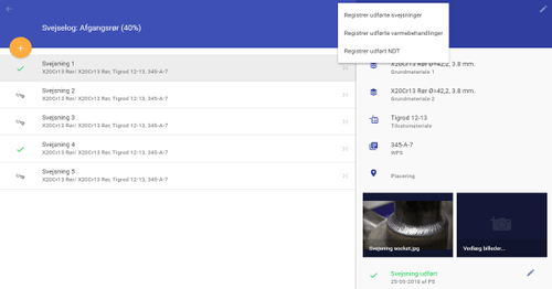 For at gøre det endnu lettere at kvittere for udførte opgaver, har vi nu gjort det muligt at registrere udførelsen af flere svejsninger, varmebehandlinger eller NDT på én gang. Derfor har vi introduceret en menu, hvor vi kan "gemme" sekundære funktioner som f.eks. registreringeså WELD forsat fremstår enkel at gå til.